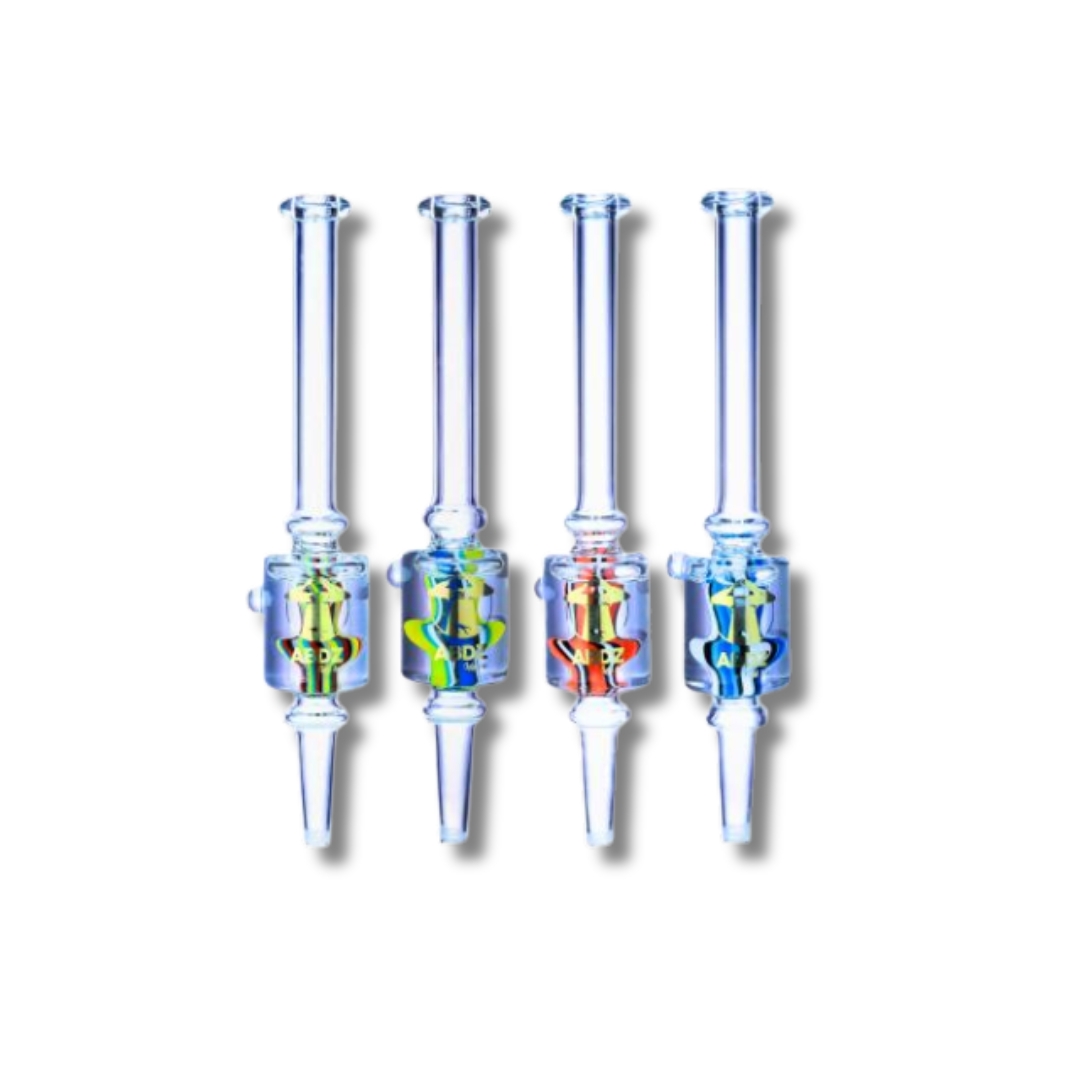 O Coletor de Néctar Abduzido Gold WigWag Meduse é a definição de sofisticação para os amantes de concentrados. Com seu formato alongado e fluido inspirado na anatomia das medusas, esta peça oferece um resfriamento de vapor superior devido ao seu corpo estendido. O acabamento artesanal em padrões WigWag e o brilho da linha Gold transformam este coletor em uma peça central de qualquer coleção.